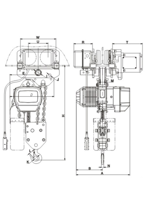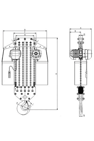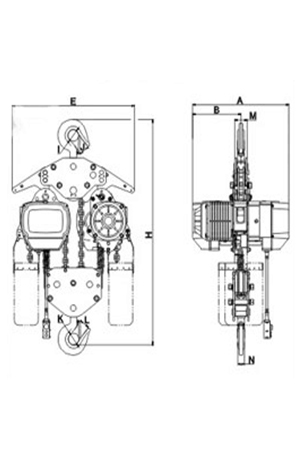 磅磁剎車:新設計的磁力產生器,其特性為產磁。可在電源切斷的同時間剎車,保證吊重時剎車確保安全。極限開關:吊上吊下都有極限開關裝置,使自動停止,防止鏈條超出,確保安全。