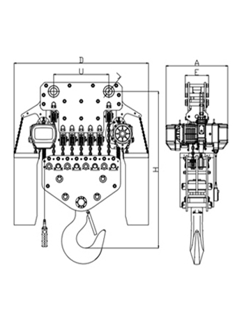 磅磁剎車:新設計的磁力產生器,其特性為產磁。可在電源切斷的同時間剎車,保證吊重時剎車確保安全。極限開關:吊上吊下都有極限開關裝置,使自動停止.防止鏈條超出,確保安全。