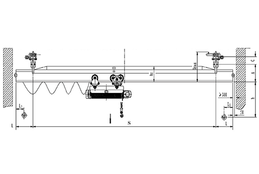 (1)通過使用外伸總臂,可使小車的行駛范圍超出起重機(jī)跨路(2)在需要的情況下,可用于車間的特定區(qū)域(3)如果加選連鎖裝蓋,則小車可往返F起重機(jī)主梁和單軌吊之間。